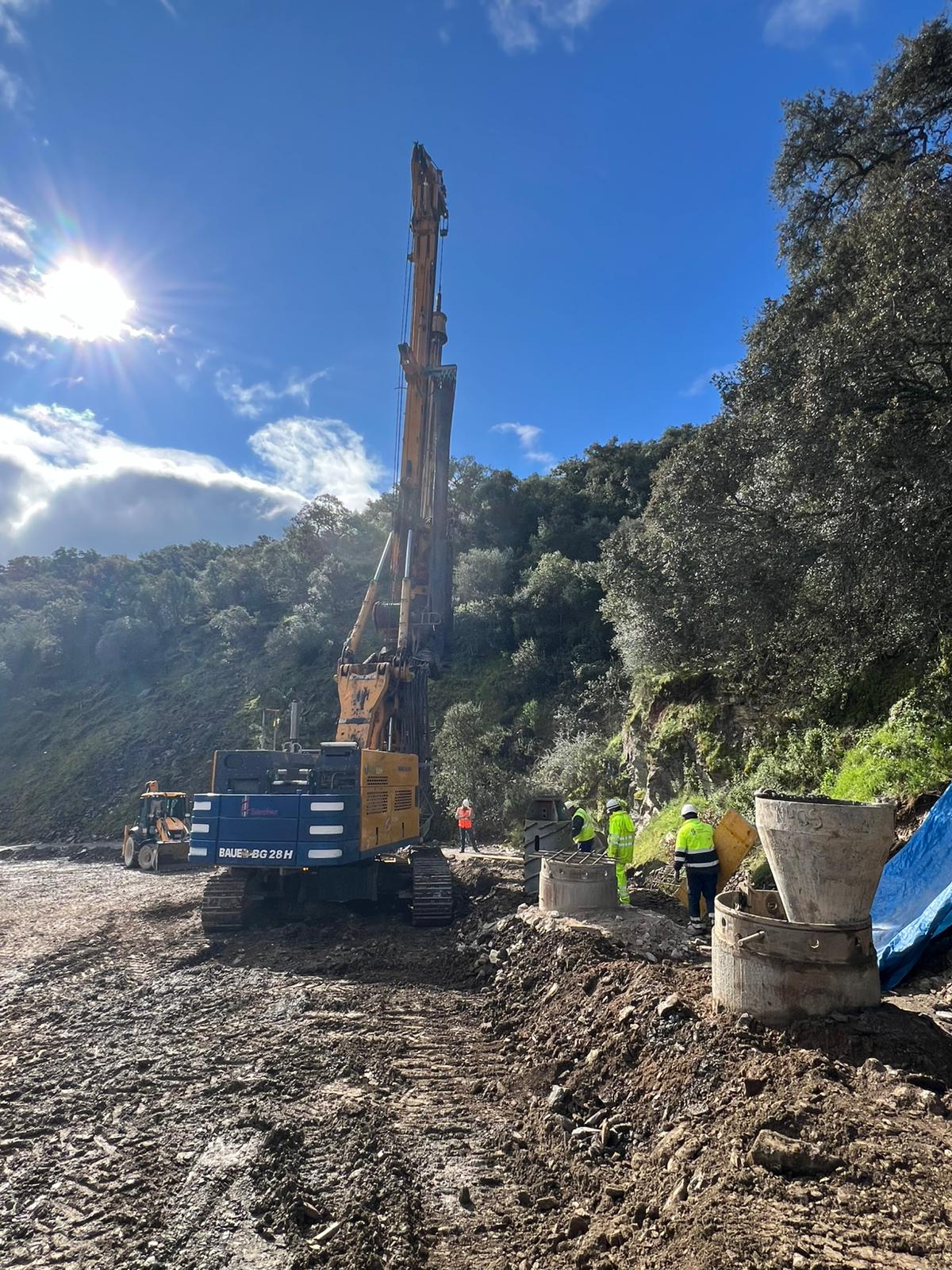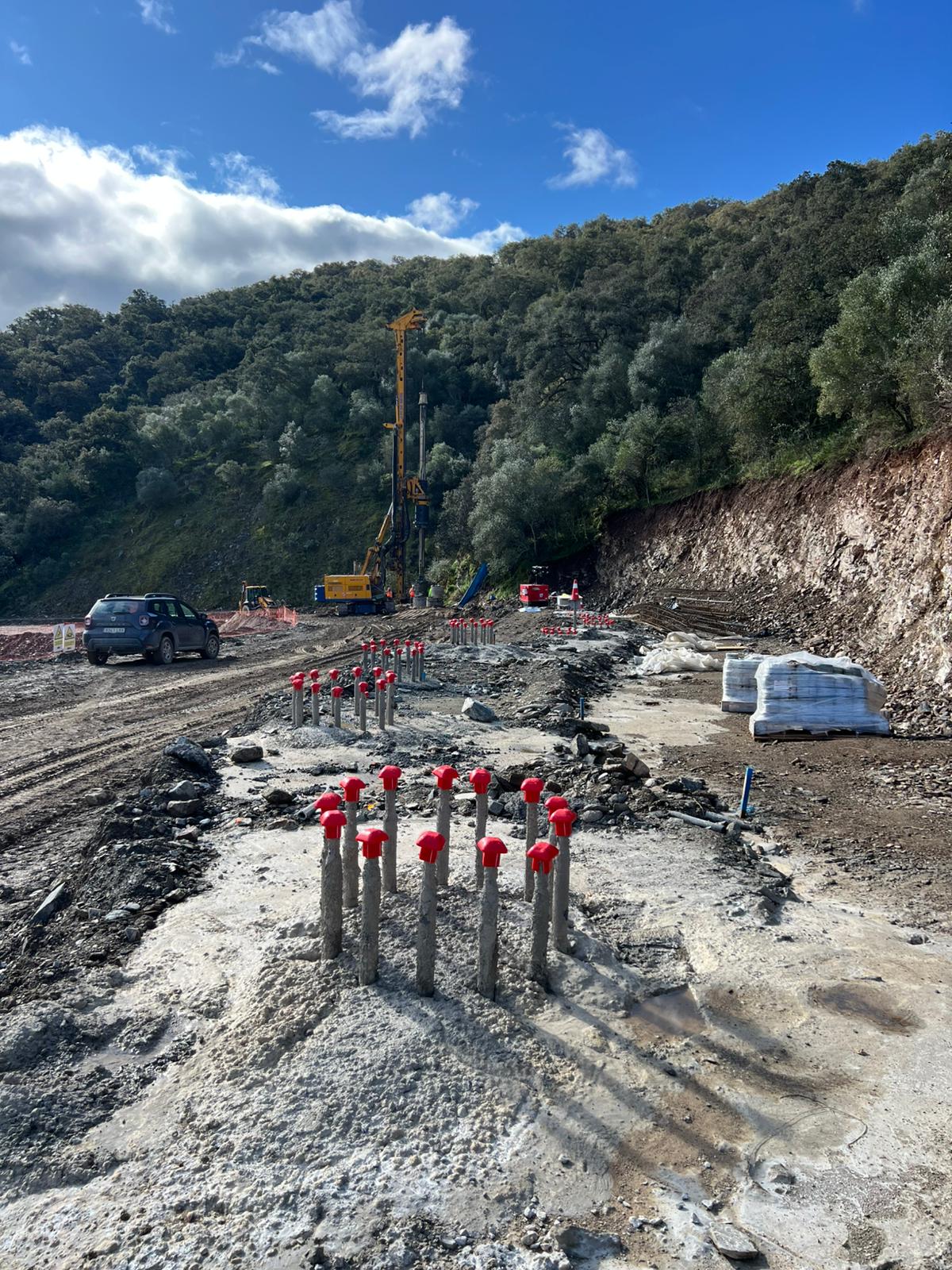 Las imágenes del vídeo muestran, entre otras cuestiones, equipos de perforación y maquinaria pesada trabajando en la estabilización y preparación del entorno, así como el avance en la configuración del área de trabajo en el barranco.